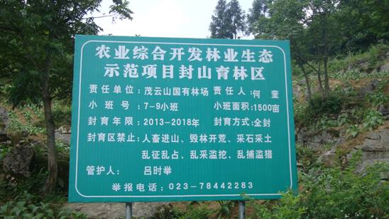 2013年4月24-26日,由彭水县林业局牵头组成的验收组,对茂云山国有林场在该县鞍子乡实施的3000亩农业综合开发林业生态示范项目建设任务,进行了综合验收,验收结果合格。